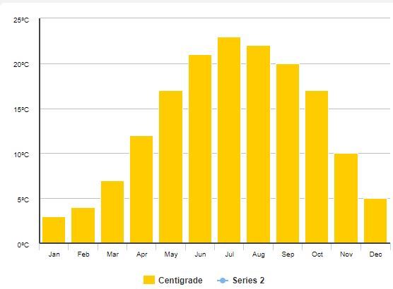 - maximální teploty v Pomorie: červenec a srpen 29 °C