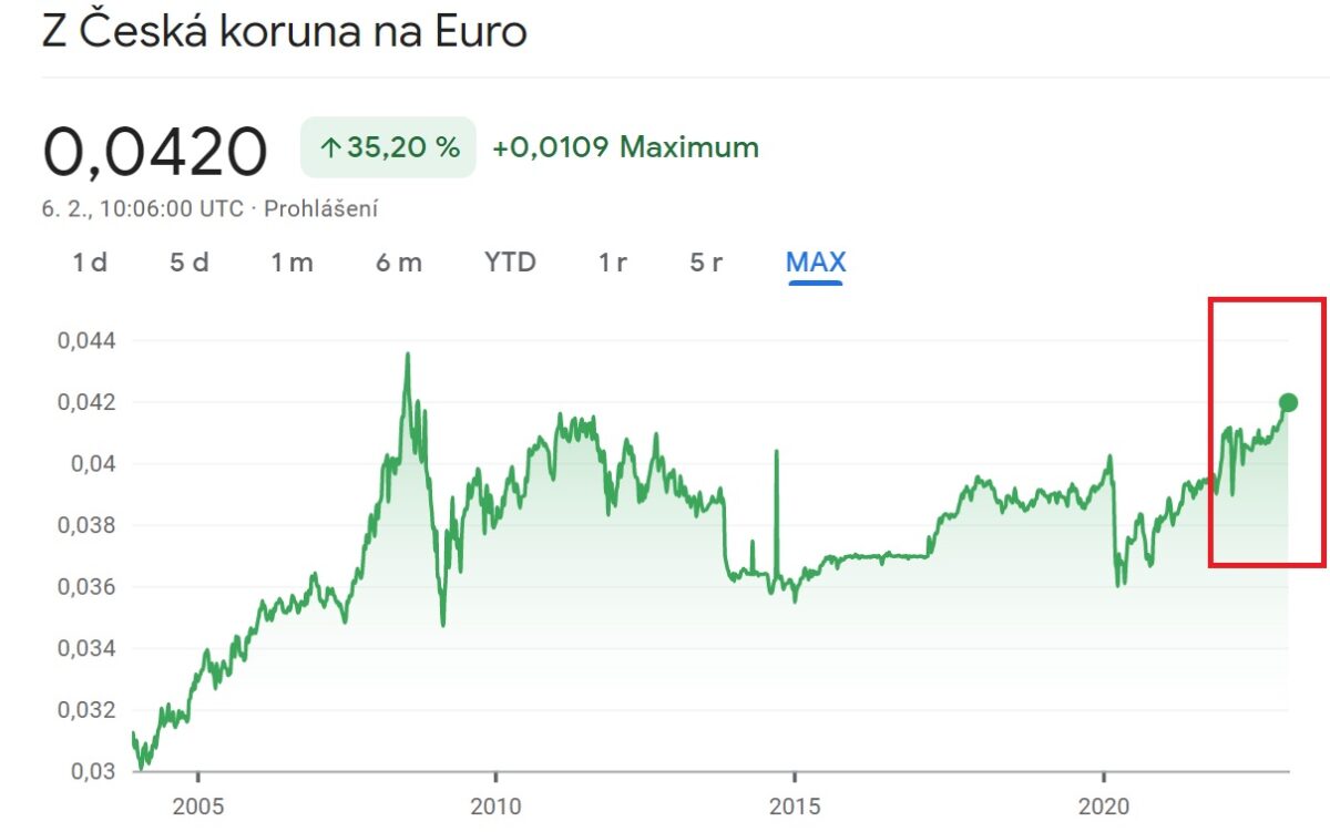 Kdy, kde a jak směnit nejlépe české peníze na cizí měnu? Za posledních 10 let je právě nyní ten nejlepší kurz pro směnu českých korun na Eura. Za Vašich 10.000 Kč aktuálně dostanete 410 Euro – pro srovnání v roce 2020 byste dostali jen 357 Euro, což je u vyšších částek už dost znát.