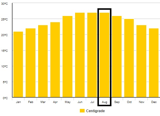 Počasí v srpnu na grafu se zbytkem roku na Kubě