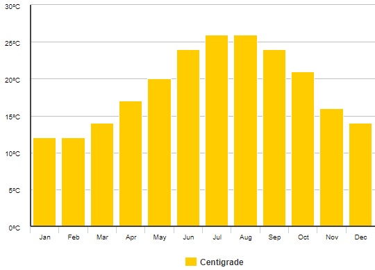 - September – v septembri čaká ľudí vo väčšine prípadov náhly pokles teploty a to približne na júnovú. V tomto mesiaci máte ešte poslednú šancu využiť jedno z najpríjemnejších teplôt a prísť si sem trošku odpočinúť, odreagovať sa.