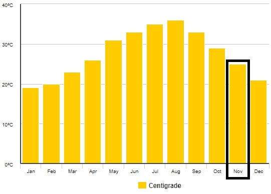 - maximální denní teploty v listopadu: 31 °C
