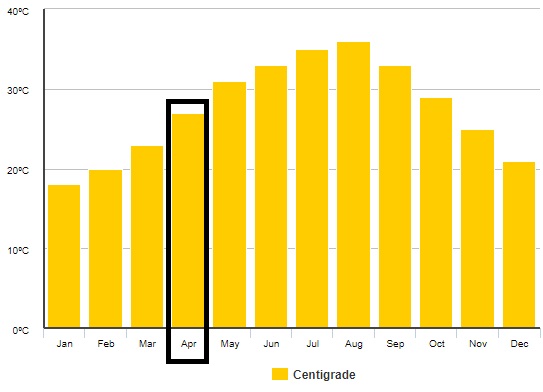 - maximální denní teploty v dubnu: 33 °C