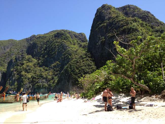 Samozřejmě nelze vynechat proslavenou pláž z filmu Pláž. Přibližně půl hodiny jízdy na lodi z ostrova Phi Phi se dostanete na stejně pojmenovanou pláž, kde není žádné stavení, ale je tak přeplněná turistickým ruchem, že se mi osobně vůbec nelíbila.